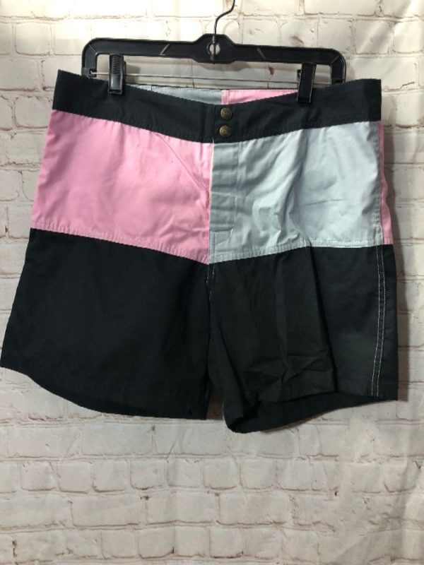 Ocean Breeze swim trunks, back pocket, color-block design, dead-stock, pink/black/gray, size XL