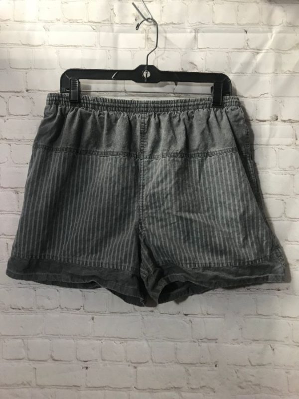 Half Moon Bay swim trunks, cotton, elastic waist, solid color & vertical striped pattern, gray, size M