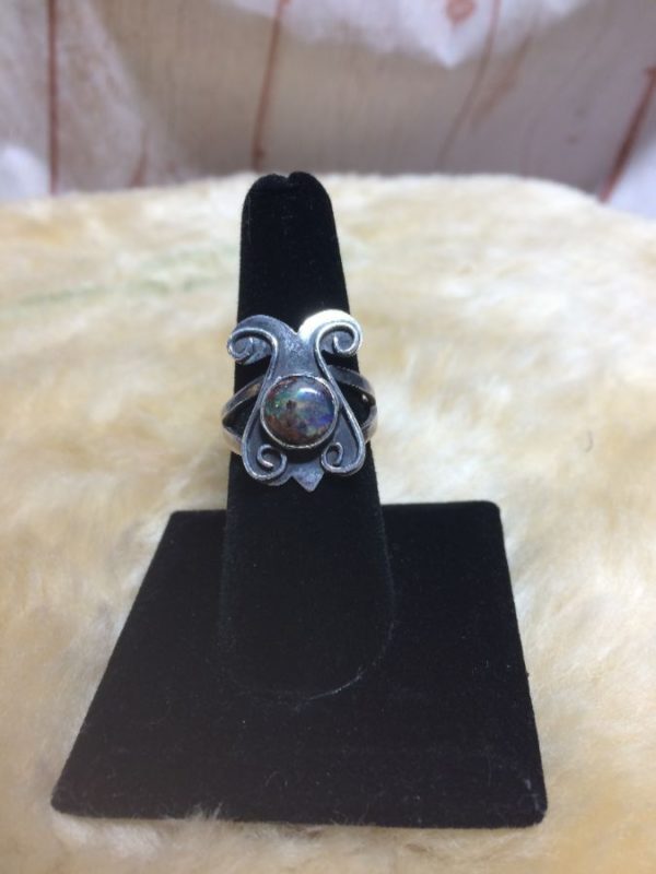 SWIRLY DESIGN RING W/ IRIDESCENT CENTER STONE STERLING SILVER 925