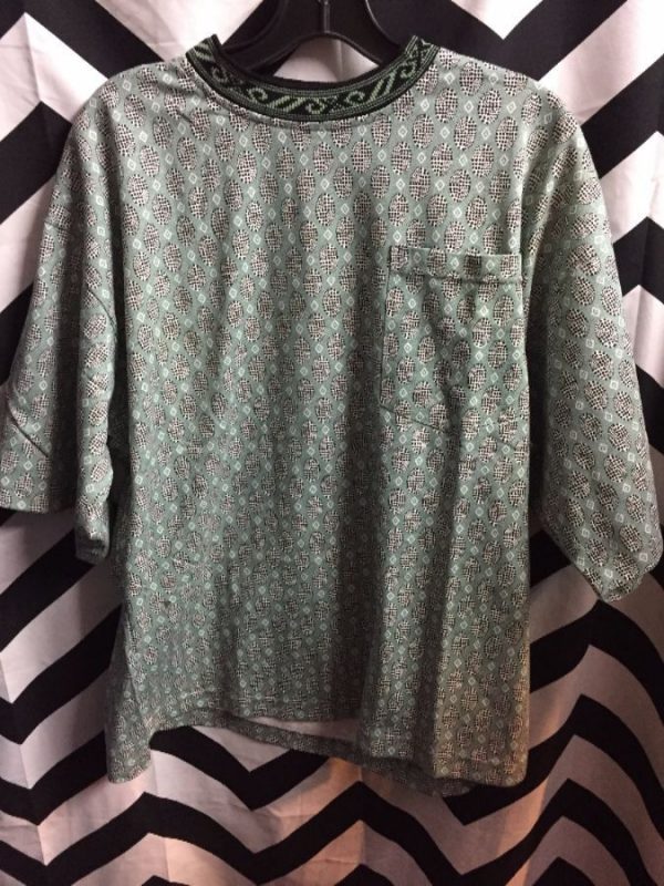 POCKET T-SHIRT COTTON KNIT W/COLLAR & GEOMETRIC CIRCLE PRINT PATTERN