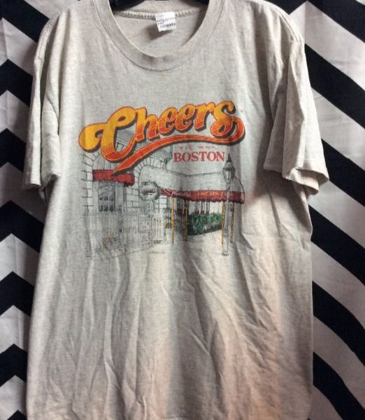 CHEERS BOSTON T-SHIRT, SCREEN PRINTED DESIGN ON FRONT, GREY/ORANGE, SIZE L