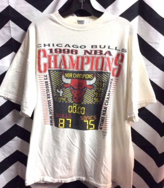 1996 Chicago Bulls NBA T-shirt, screen printed design, white/red/black, size XL