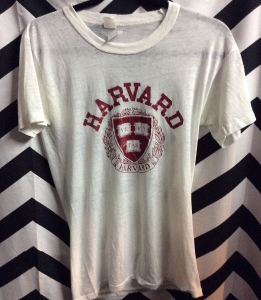 Harvard T-shirt, Ve Ri Tas, see thru softy, screen printed full front, size M
