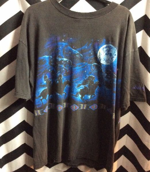 Native American T-shirt, Tribe Eagle Sky, screen printed design front & back, black/blue, size XXL