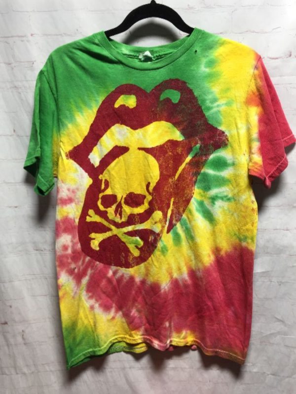 T-SHIRT RAINBOW TIE-DYE ROLLING STONES TONGUE LOGO W/ SKULL CROSSBONES