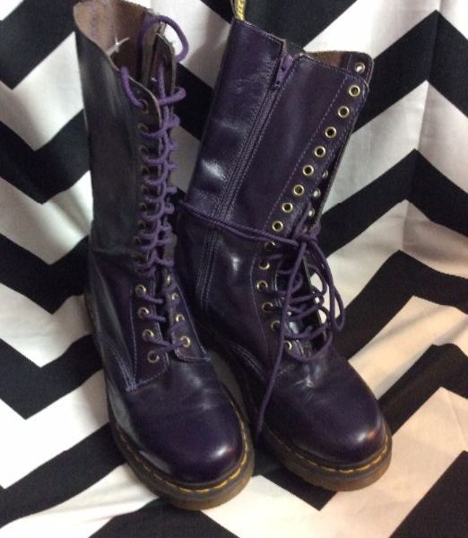 Dr. Martens boots, high tops, 28 hole lace-up, deadstock, purple, size 9
