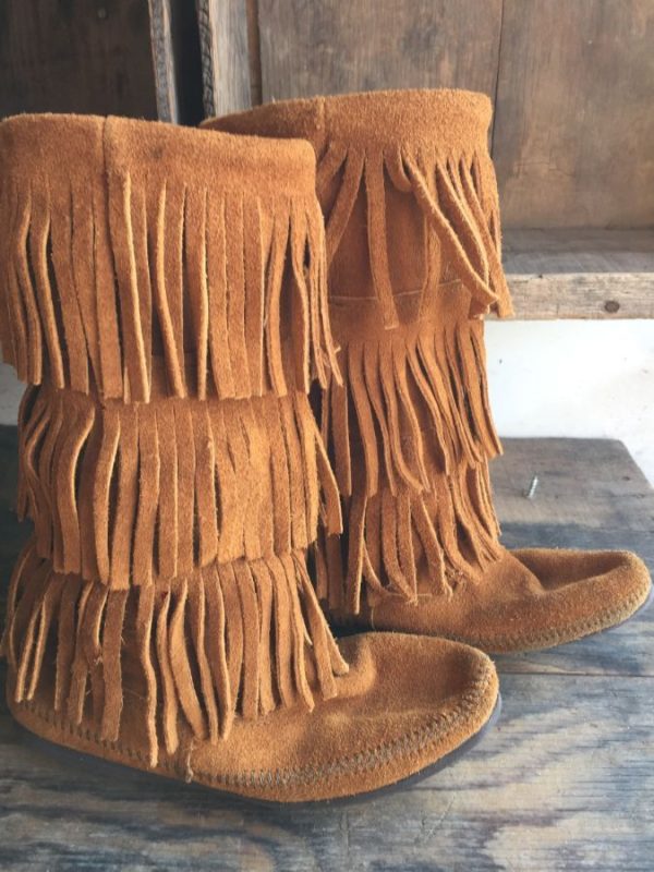 TALL SUEDE MINNETONKA TRIPLE FRINGE MOCCASIN BOOTS