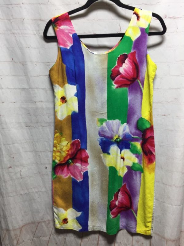 TANK TOP DRESS W/ COLOR-BLOCK DESIGN & FLORAL PATTERNS