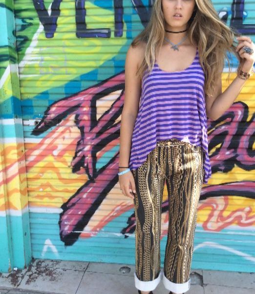 TANK TOP, HORIZONTAL PRINT STRIPES, PURPLE/LAVENDER