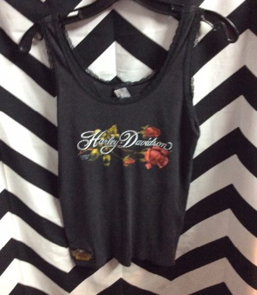TANK TOP – HARLEY DAVIDSON – ROSE DESIGN – LACE TRIM –