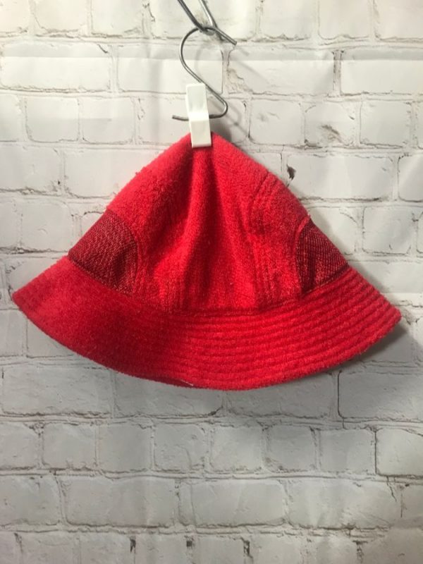Hat, bucket style, Terry cloth, net inserts on sides for ventilation, red
