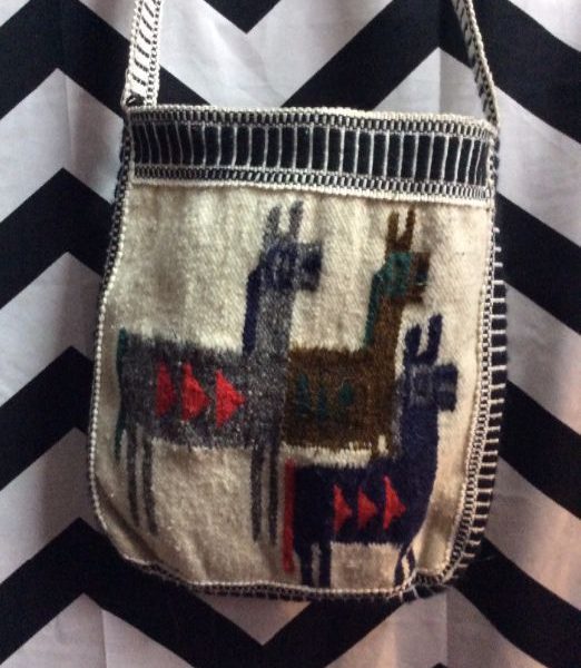 Purse, textile, lama design, red/creme/black, size 11.5″ x 12″