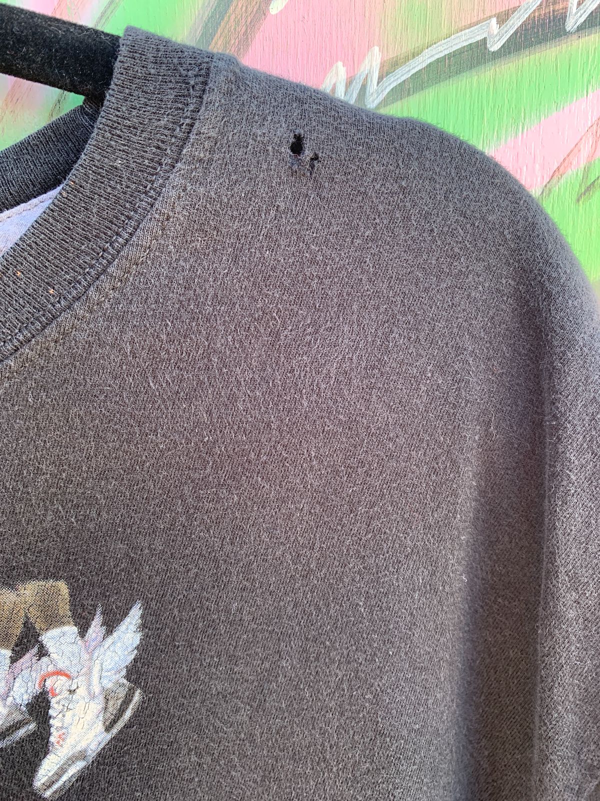 AS IS – SMALL FIT MAY 1985 SPACE SHUTTLE CHALLENGER AMERICAN FLAG LETTERS GRAPHIC T-SHIRT