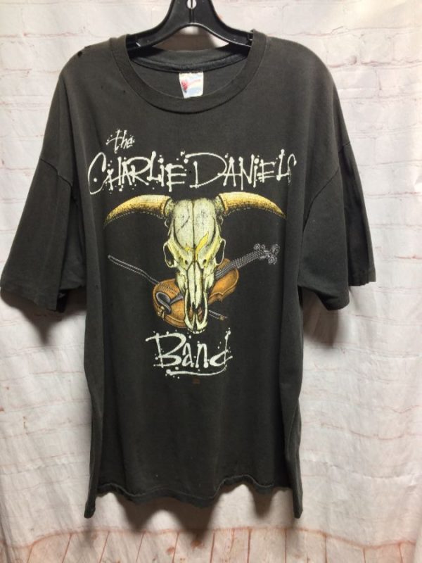 CHARLIE DANIELS BAND SHIRT W/ BULL SKULL & FIDDLE GRAPHIC & TOUR CITIES