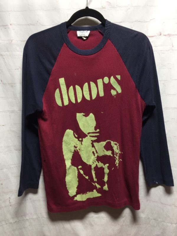 THE DOORS W/ RAGLAN STYLE SLEEVES & RIBBED COTTON FABRIC BASEBALL SHIRT