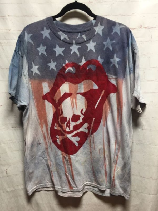 Rick The Dick T-shirt, American flag design shirt, The Rolling Stones, classic tongue with skull design, screen printed graphic design on front & lettering on back, red/white/blue, size XL