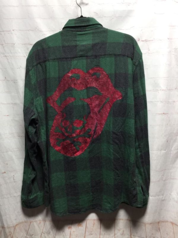 THE ROLLING STONES PLAID PRINT FLANNEL SHIRT W/ TONGUE DESIGN