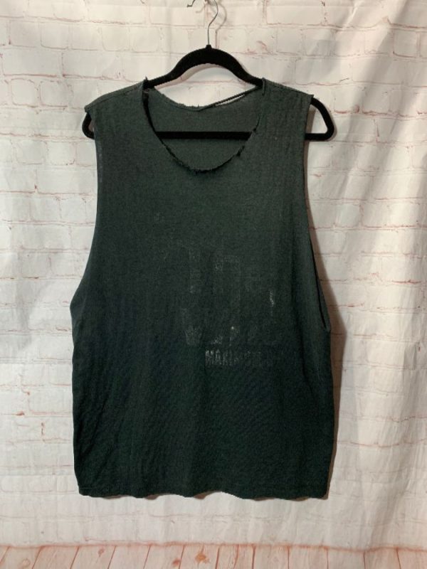 Tank Top, reconstructed T-shirt, cut-out sleeves/neck, super soft,The Who, The Kids Are Alright tour 1984-1989, screen printed full front graphic design with band/lettering & washed out lettering in back , faded, distressed, black/blue/yellow
