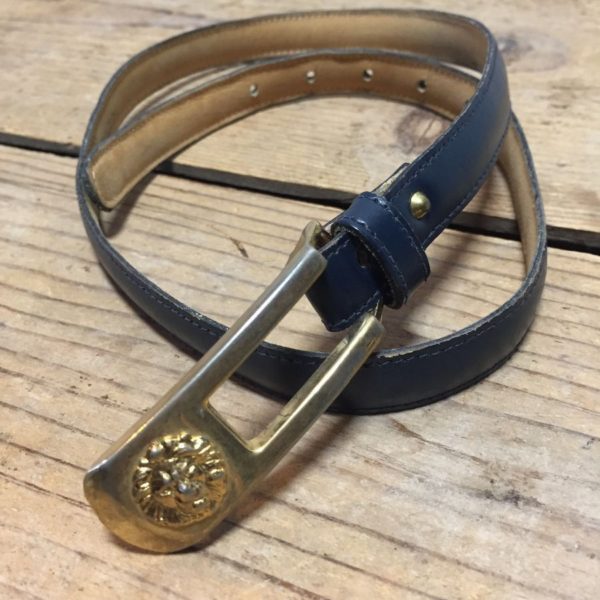NARROW LEATHER DRESS BELT SOLID BRASS BUCKLE MADE IN ITALY
