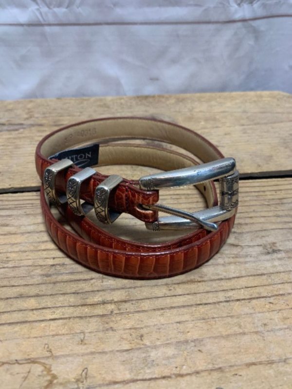 THIN BRIGHTON EMBOSSED LEATHER BELT WITH 3 BELT LOOPS