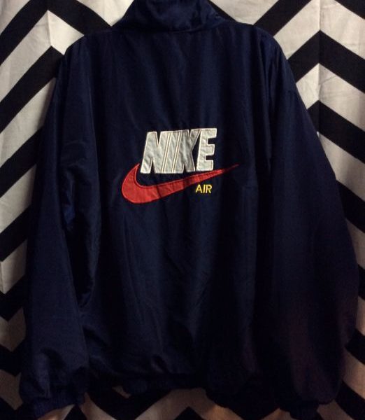 Nike bomber jacket, appliqued full back design, embroidered logo front chest, navy/red/white, size M