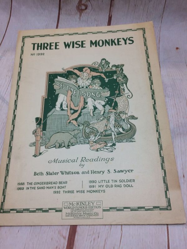 Sheet music, Three Wise Monkeys Bedtime Songs