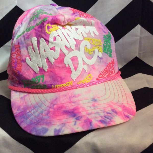 Baseball style cap, tie-dye, Washington DC, snap back, neon colors, neon pink/purple, size adjustable