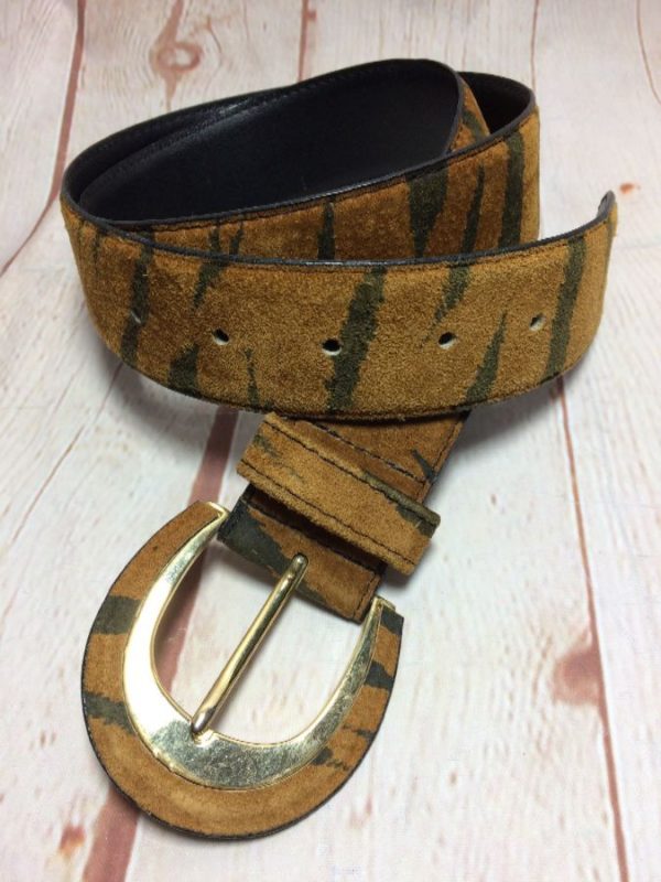 TIGER STRIPED SUEDE BELT GOLD HARDWARE