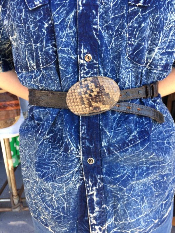 TONY LAMA PATCHWORK LIZARD GRAIN LEATHER BELT WITH FUNKY SNAKE GRAIN OVAL BUCKLE