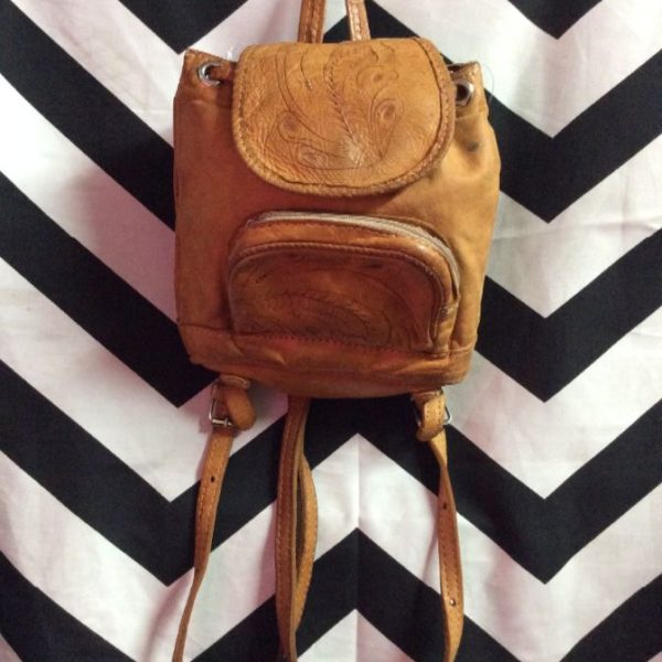 TOOLED MEXICAN LEATHER MINI BACKPACK W/CHECKED PRINT LINING