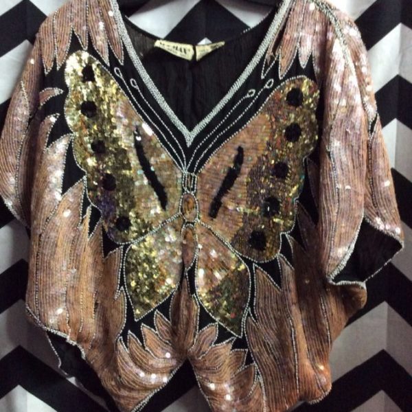 TOP W/SEQUIN & BEADED BUTTERFLY DESIGN FRONT & BACK