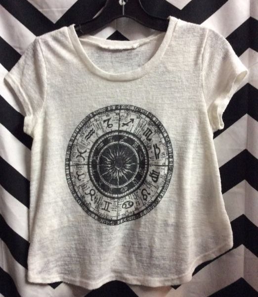 T-SHIRT – SHORT SLEEVES – SOFT – THIN – SCREEN PRINTED CALENDAR W/HOROSCOPE SIGNS GRAPHIC