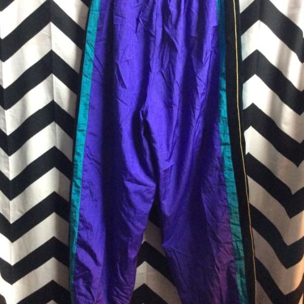 TRACK PANTS NYLON VELVET TRIM W/ ZIPPED ANKLES & ELASTIC WASTE