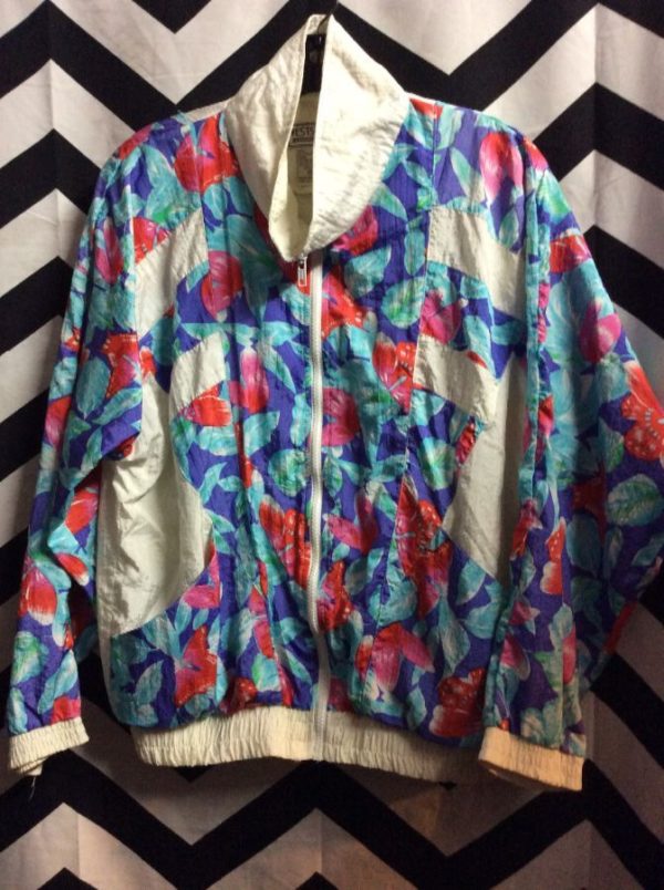 TROPICAL FLORAL PRINT W/ COLOR BLOCK DESIGN WINDBREAKER