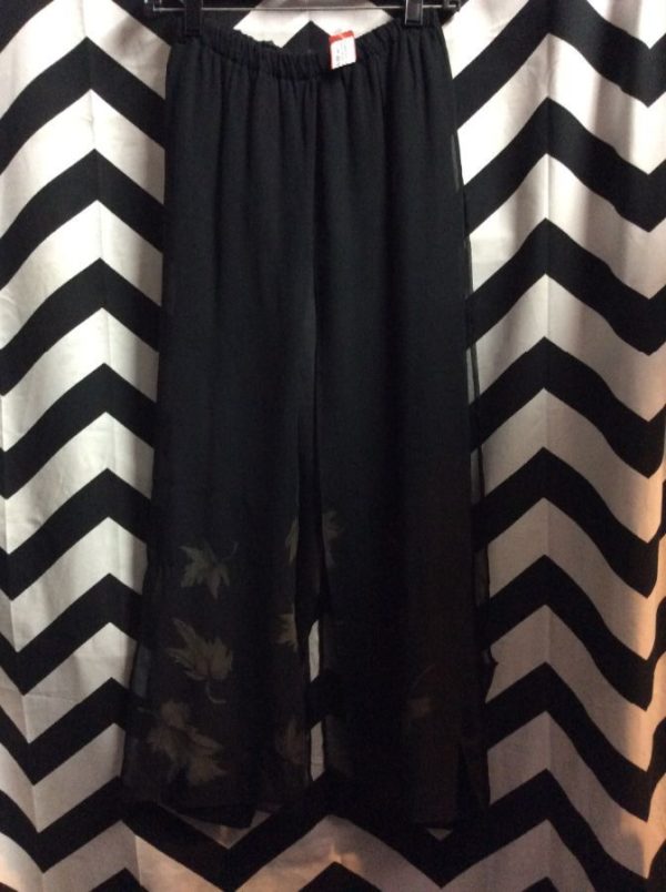 TROUSERS W/ SPLIT LEG & CHIFFON OVERLAY ELASTIC WAIST