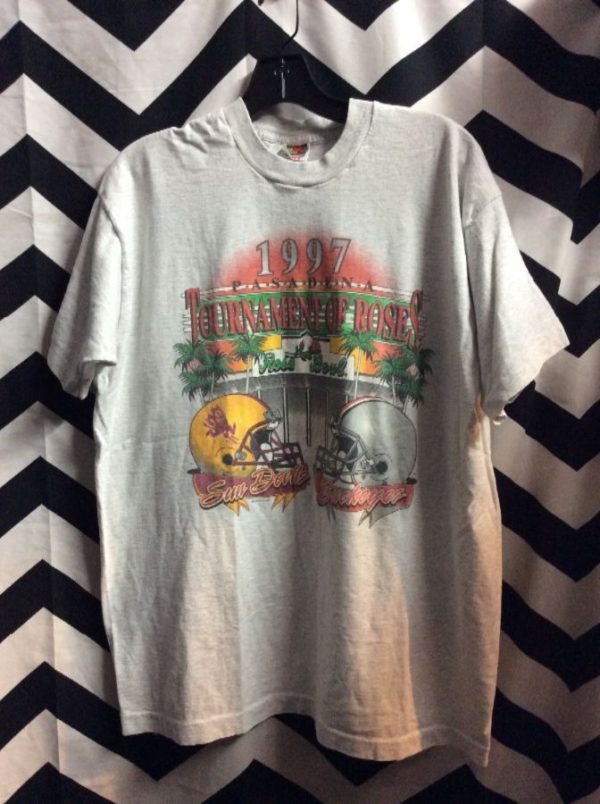 1997 T-shirt, Pasadena Tournament Of Roses, Rose Bowl Sun Devils vs Buckeyes, screen printed front design, white/multi, size XL