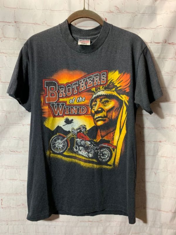 T-SHIRT BROTHERS OF THE WIND W/ MOTORCYCLE & NATIVE AMERICAN CHIEF GRAPHIC