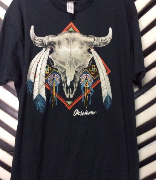 OKLAHOMA T-SHIRT W/BUFFALO SKULL & FEATHERS