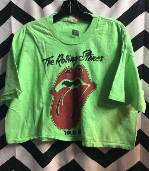 1981 Rolling Stones Tour T-shirt, cropped, screen printed design, neon green/red