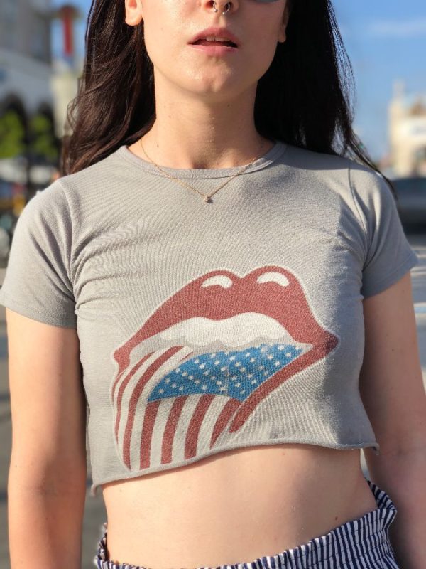 T-SHIRT CROPPED TOP W/ ROLLING STONES USA FLAG/TONGUE LOGO