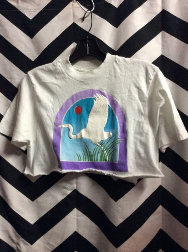 T-SHIRT CROPPED W/ SCREEN PRINTED FLYING CRANE & SUN