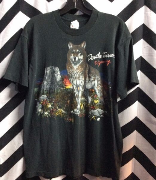 T-SHIRT – DEVILS TOWER WYOMING W/WOLF DESIGN