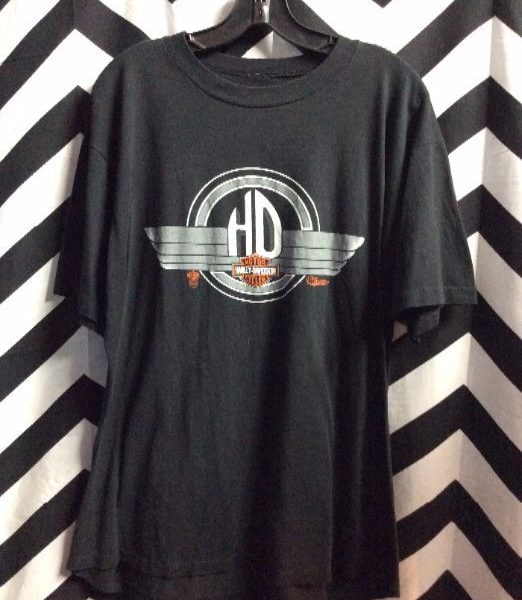 T-shirt, softy, Harley Davidson, Clayton County, screen printed designs full front and back, black/white/gray