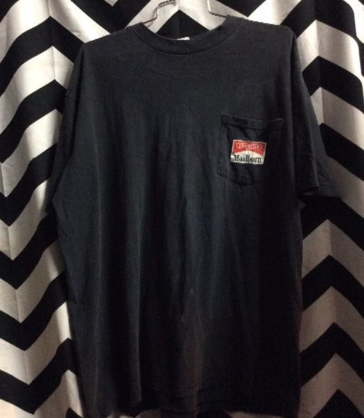 T-shirt, Marlboro Unlimited, train wheel & track screen printed graphic, black/red/white, size XL