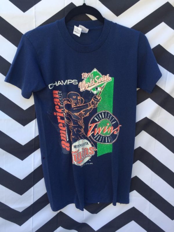 T-SHIRT, MINNESOTA TWINS, 1991 WORLD SERIES CHAMPS, SCREEN PRINTED FULL FRONT GRAPHIC