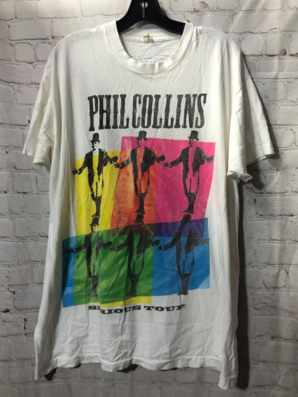 T-shirt, Phil Collins, Serious Tour, screen printed designs on full front & full back, white/red/black/yellow/pink/blue/green, size XL
