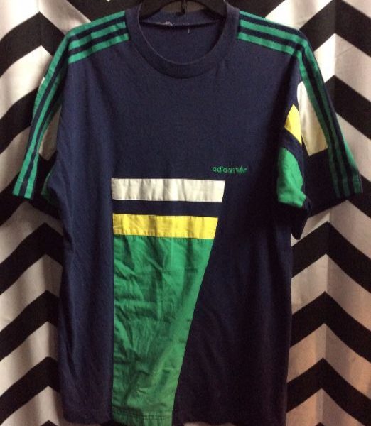 RETRO ADIDAS T-SHIRT – STRIPED SHOULDER TRIM – COLOR BLOCK DESIGN
