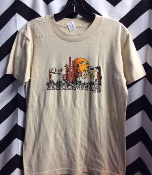 Retro T-shirt, Arizona, screen printed cactus sunset graphic, creme/multi, size S