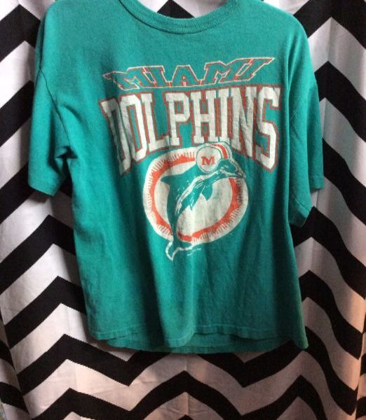Retro Starter T-shirt, Miami Dolphins, screen printed design full front, teal/white/orange, size XL