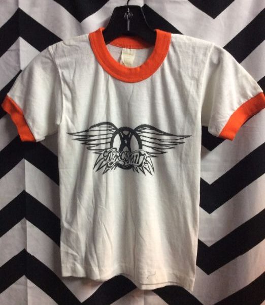 Aerosmith Kids T-shirt, ringer, screen printed, white/orange